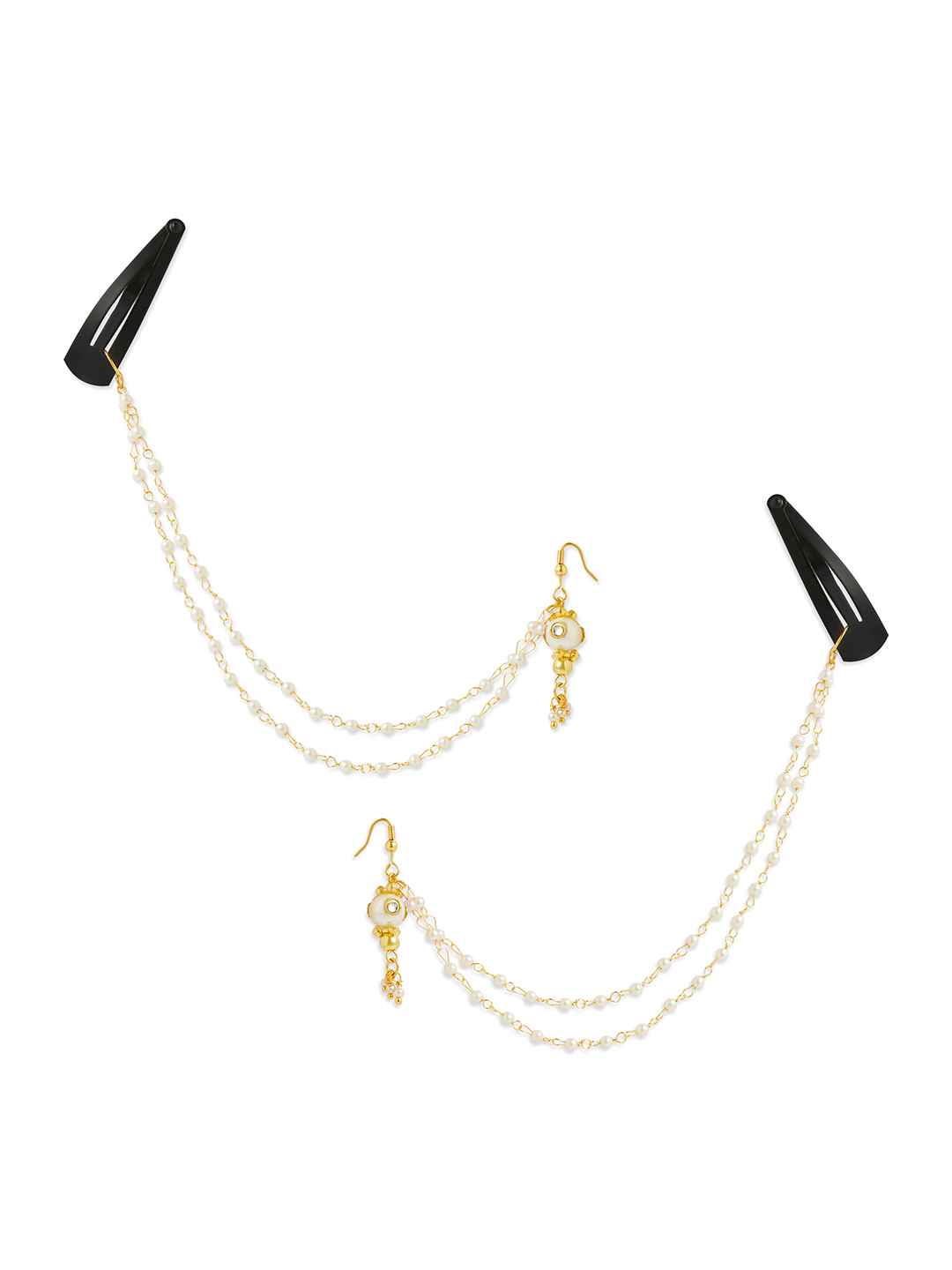 A pair of festive white bead chain earrings with tic-tacs (2 Qty) -White
