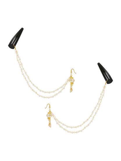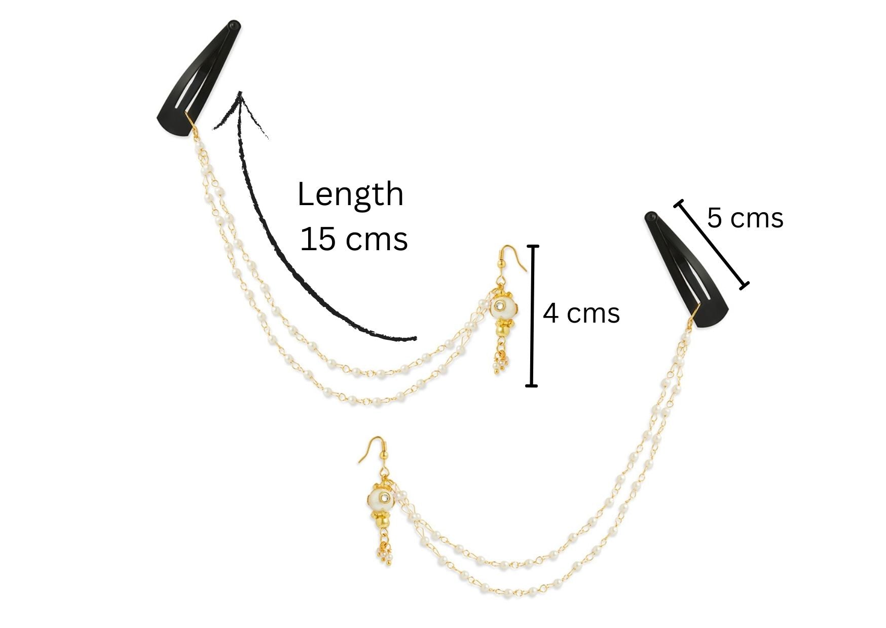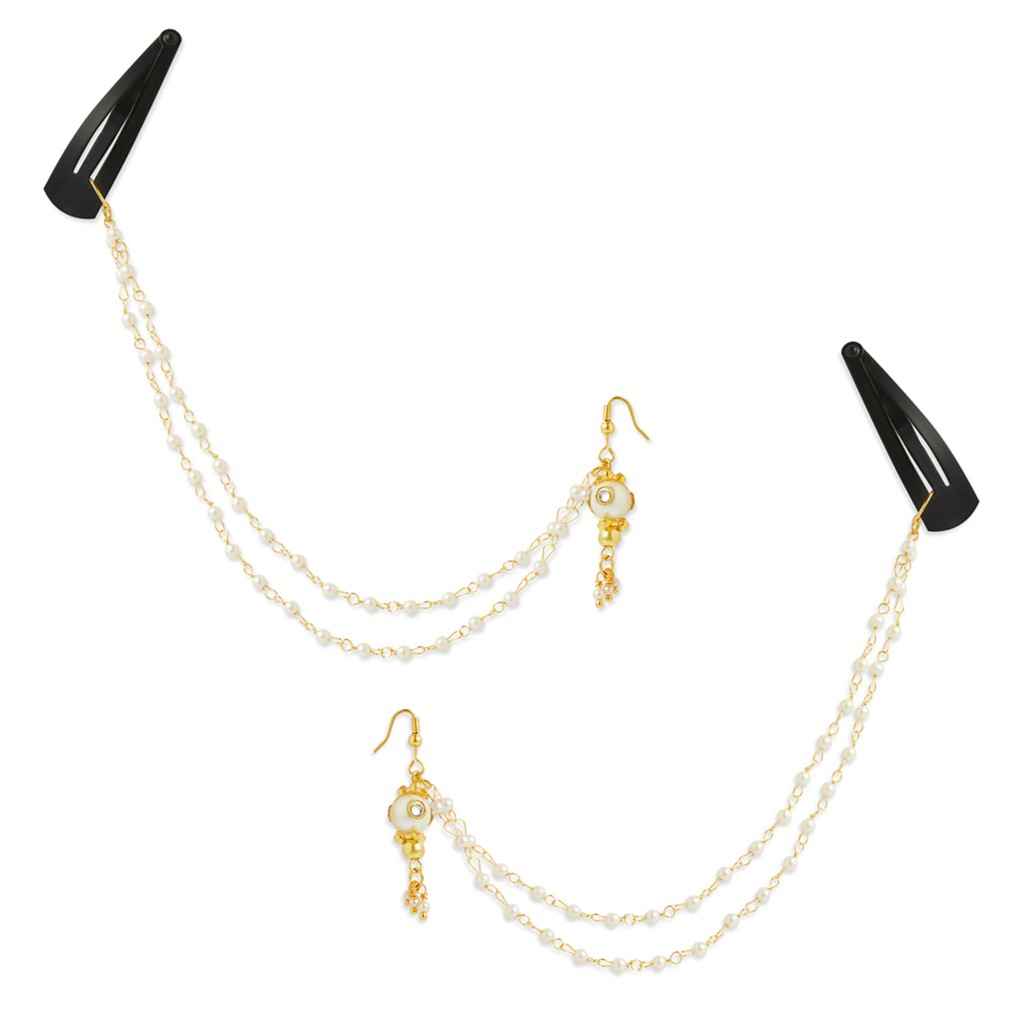 This unique and festive pair of earrings features a delicate chain that can be secured in the hair, doubling as both earrings and a hair accessory. This beautiful piece featuring beads is sure to add a special charm to your little princess' outfit.