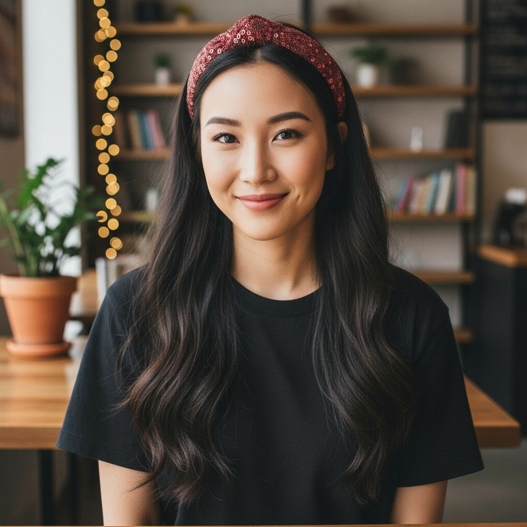 Maroon - Sequined party knotted hair band. Whether you want to wear it daily or elevate your look at parties, this hairband is the perfect accessory.